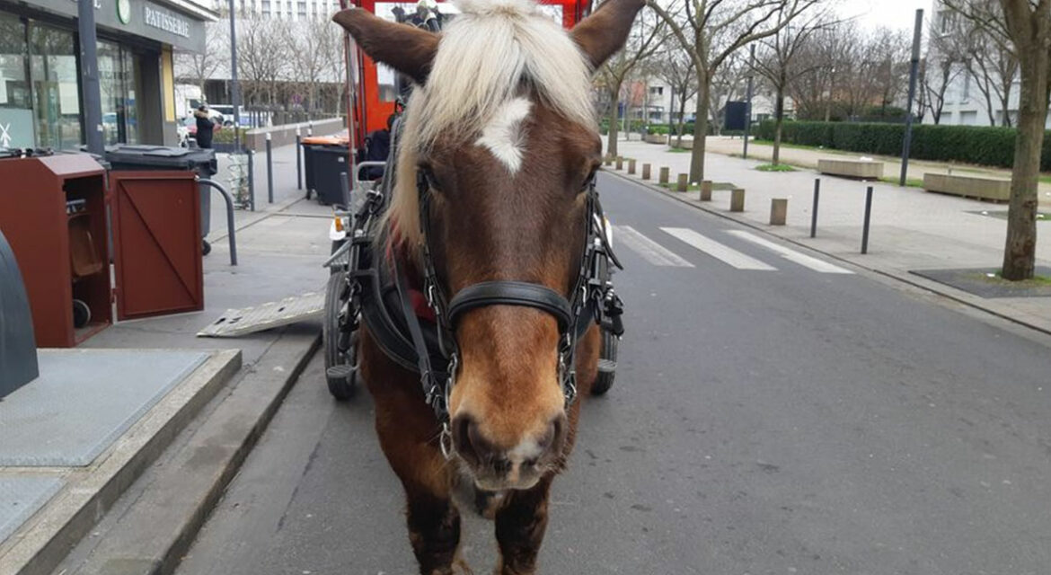 Queteur, le cheval qui collecte les déchets compostables à Stains © Radio France – Hajera Mohammad